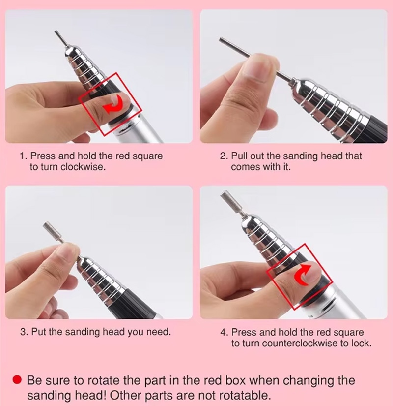 Ez a 35 000 fordulat/perc fordulatszámú elektromos hordozható zselés körömfúró cserefúró működési mód, azaz dugja ki és húzza ki, egyszerű és kényelmes, a csere a befejezés után használható.