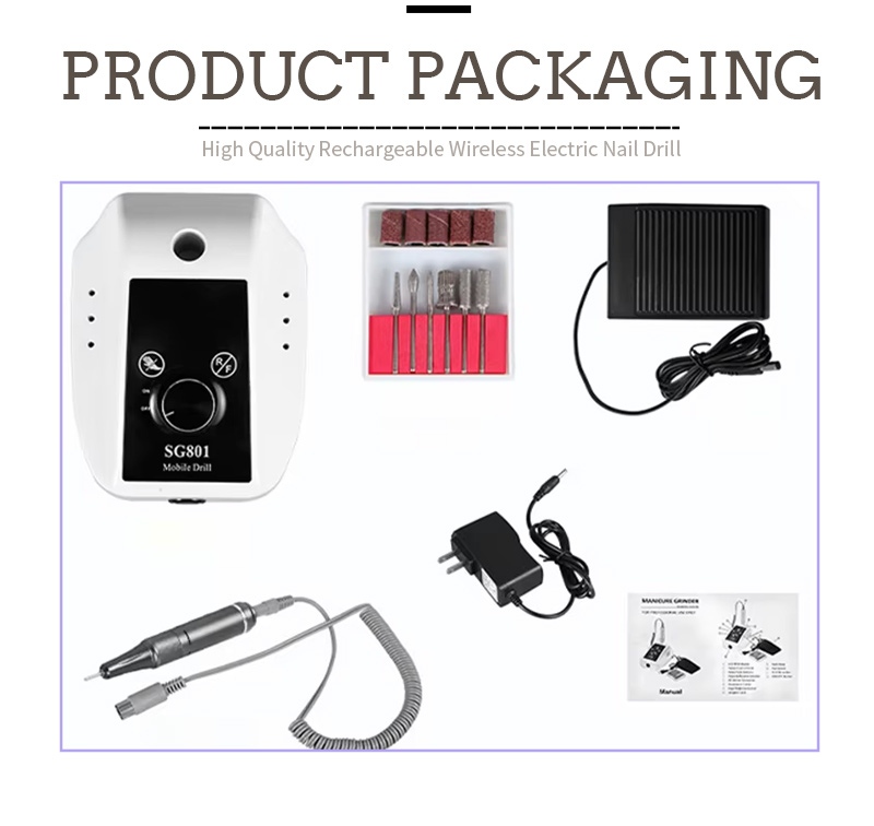 Ennek a 35 000-es fordulatszámú elektromos hordozható zselés körömfúró-csomagnak a tartalma egy csiszolótoll terméket, egy USB töltőkábelt, egy termék használati útmutatót, valamint egy könnyű és hordozható dobozt tartalmaz.
