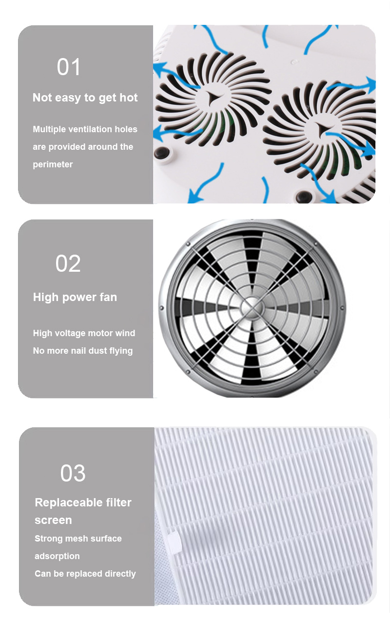 A termék biztosítja a ragasztó szárítását is zsugorodás nélkül. Kettős fényforrásai gyengéd fűtést biztosítanak a kéz elszíneződésének és a szem feszültségének megakadályozására, mind a kéz, mind a lábak számára, és rendkívül gyors szárítási eredményeket eredményeznek.
