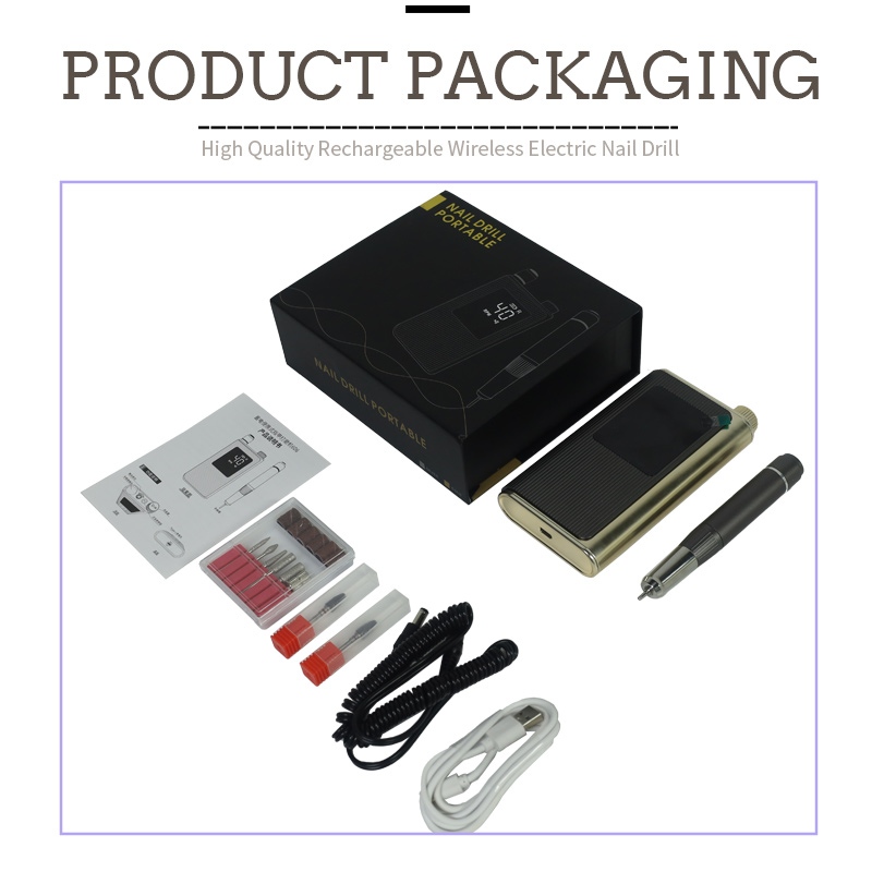 Ennek a 40 000-es fordulatszámú, nagy sebességű professzionális körömfúró-csomagnak a tartalma egy csiszolótoll-termék, egy USB-töltőkábel, egy termék használati útmutatója, valamint egy könnyű és hordozható doboz.