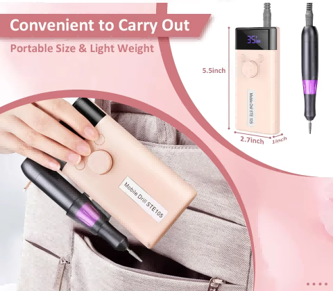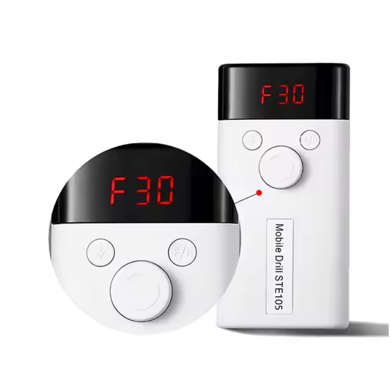 A 30 000 fordulat/perc fordulatszámú elektromos körömlakkozó kijelzője be-/kikapcsolóval és előre/hátra forgatással rendelkezik, összesen egy gombos aktiváláshoz, alul gyorstöltő csatlakozóaljzattal, felül cserélhető fúróaljzattal, valamint három fokozatban állítható fordulatszámmal, hogy különféle igényeket kielégítsen.