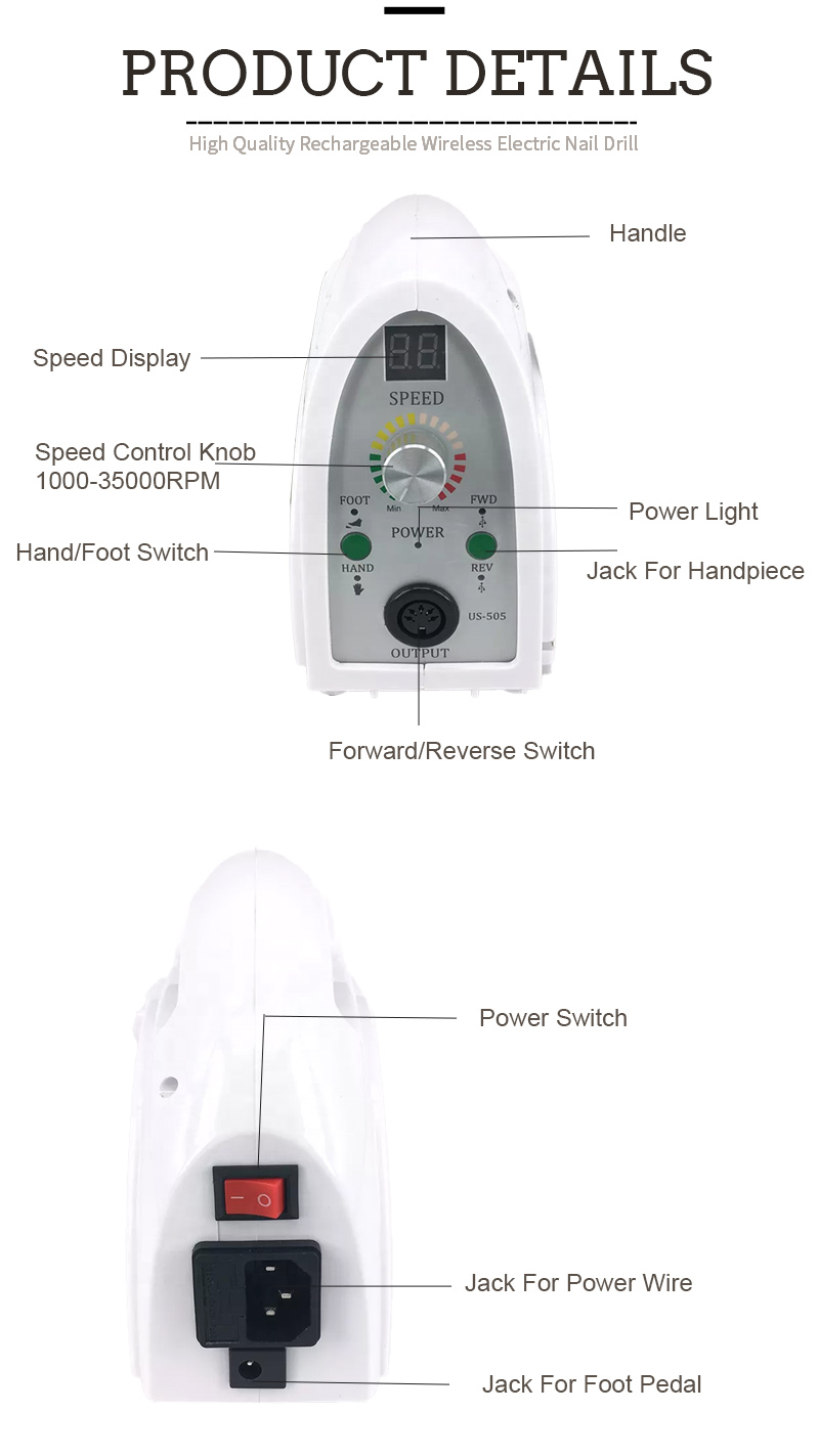 Termékjellemző és a 702 nagysebességű 35000 fordulat / perc körömlakk eltávolító elektromos körömfájl alkalmazása