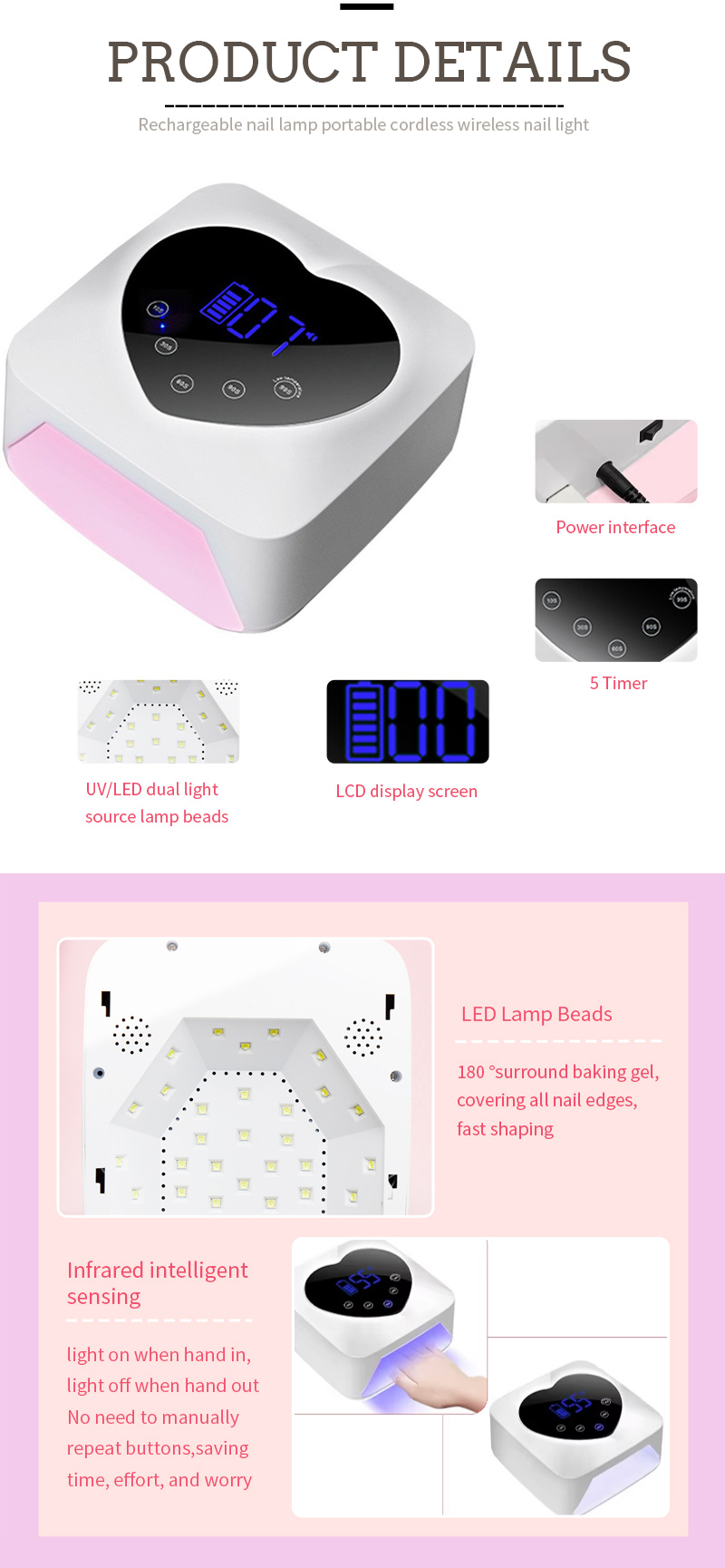 A termék biztosítja a ragasztó szárítását is zsugorodás nélkül. Kettős fényforrásai gyengéd fűtést biztosítanak a kéz elszíneződésének és a szem feszültségének megakadályozására, mind a kéz, mind a lábak számára, és rendkívül gyors szárítási eredményeket eredményeznek.