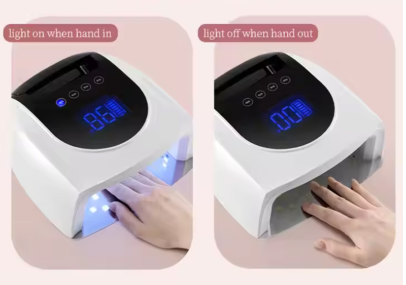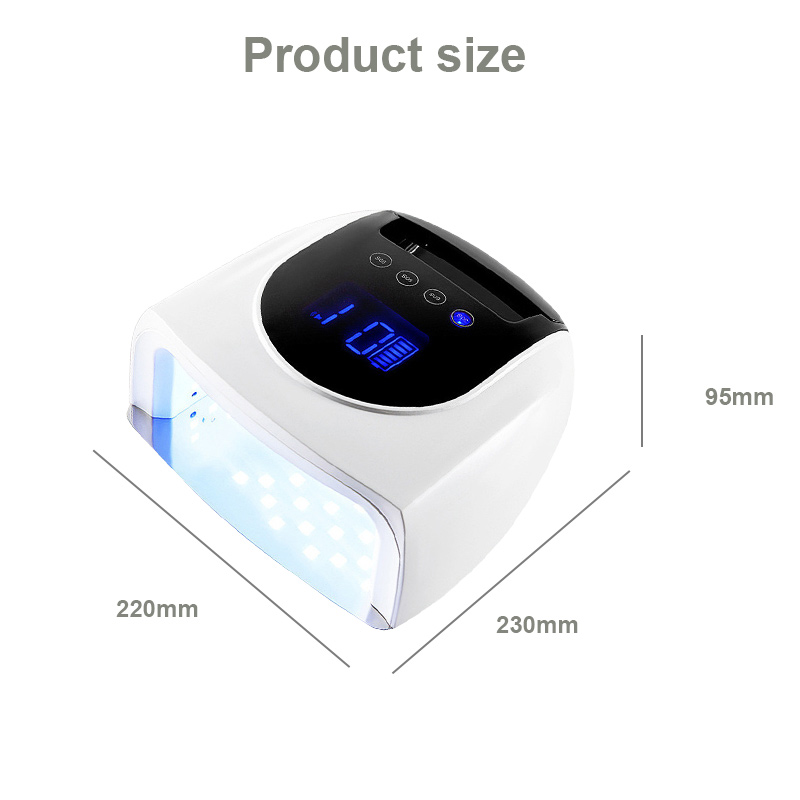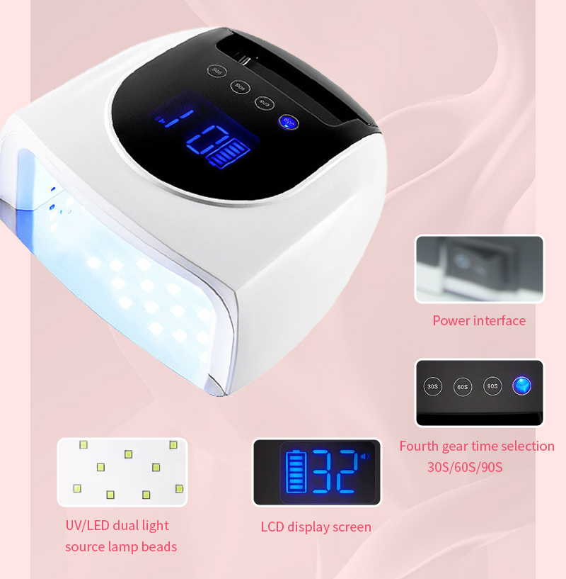 A termék egyenletes ragasztószáradást biztosít zsugorodás nélkül. Kettős fényforrása gyengéd melegítést biztosít, hogy megakadályozza a kéz elszíneződését és a szem megerőltetését, így kézre és lábra egyaránt alkalmas, rendkívül gyors száradást biztosítva.