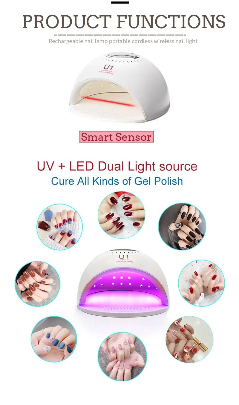 A termék egyenletes ragasztószáradást biztosít zsugorodás nélkül. Kettős fényforrása gyengéd melegítést biztosít, hogy megakadályozza a kéz elszíneződését és a szem megerőltetését, így kézre és lábra egyaránt alkalmas, rendkívül gyors száradást biztosítva.