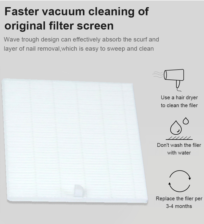 3, A porszűrő rendszeresen cserélhető a hatás biztosítása érdekében.