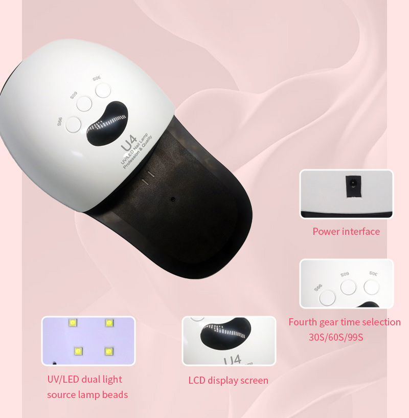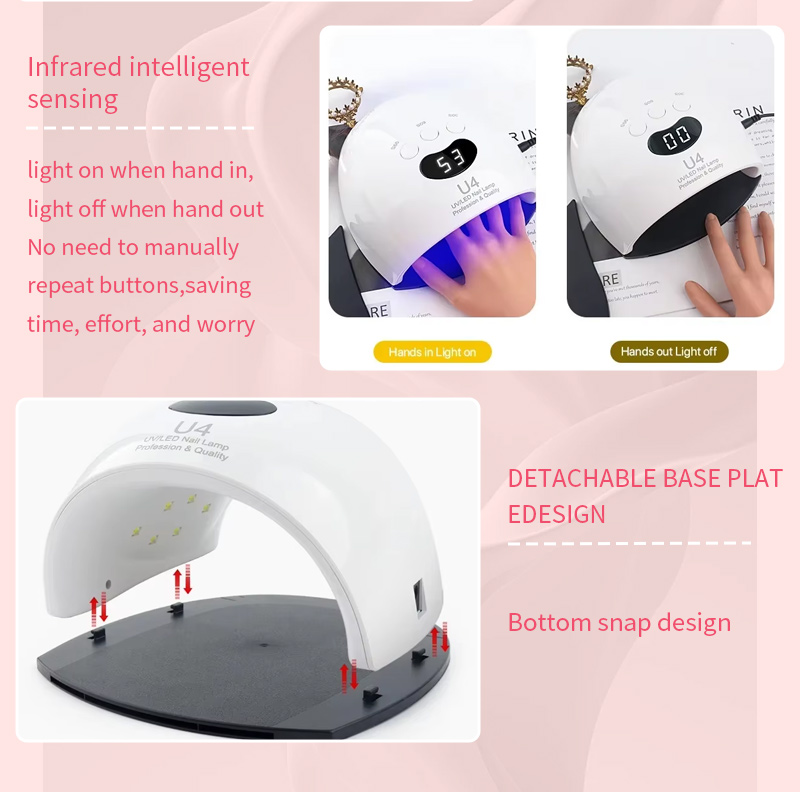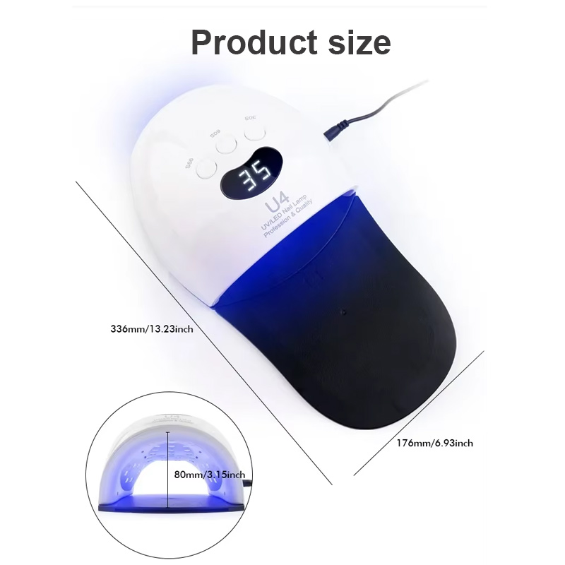 Ez a kiváló minőségű LED körömszárító lámpa egyenletes ragasztószáradást biztosít zsugorodás nélkül. Kettős fényforrása gyengéd melegítést biztosít, hogy megakadályozza a kéz elszíneződését és a szem megerőltetését, így kézre és lábra egyaránt alkalmas, rendkívül gyors száradást biztosítva.