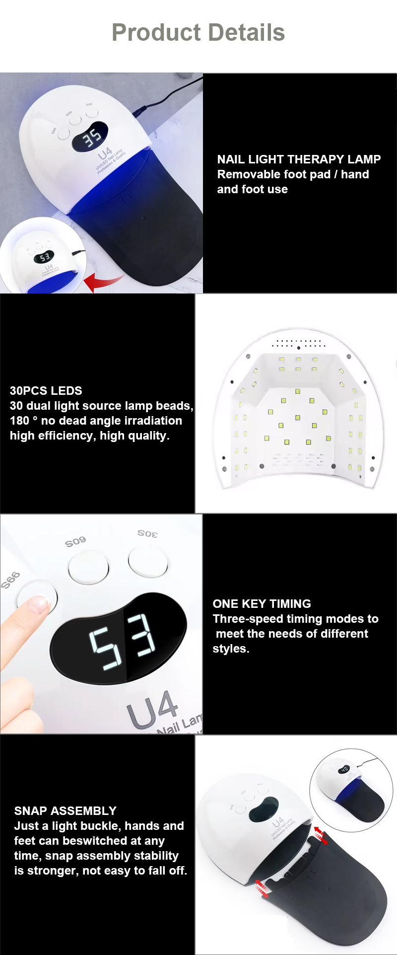 Főbb termékeink közé tartoznak a LED-es körömlámpák: 186W/168W/86W/84W/80W/75W/72W/65W/60W/54W/50W/48W/36W/24W/16W/12W/6W/3W stb. Újratölthető vezeték nélküli modellek: 156W/120W/96W/90W/86W/84W/80W/72W/66W/64W/60W/54W/48W stb. Körömdíszítő fúrók: 80W/65W/60W/45W/35W/25W/15W, stb. Vezeték nélküli modellek: 3W, 5W, 5W 25W, 20W, 15W, stb. 25000RPM/30000RPM/35000RPM/40000RPM/45000RPM/kefe nélküli/Ultra-nagy sebességű kefe nélküli. Teljes porgyűjtő. 80W/68W/60W/48W/45W/40W/36W/30W/25W/20W/15W/6W stb., Vezeték nélküli töltőmodellek: 80W, 60W, 40W, 30W.