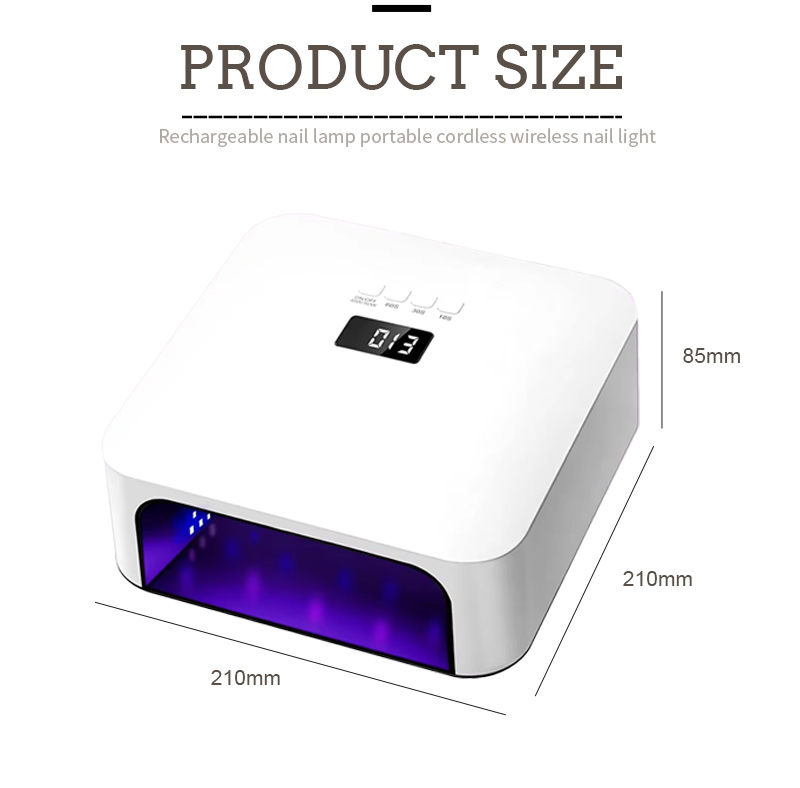 Ennek a kiváló minőségű, gyors körömszárító lámpának a méretei 210 mm hosszúak, 210 mm szélesek és 85 mm magasak, nagy kapacitással és kézzel és lábbal egyaránt használható, ami nagyon kényelmes.