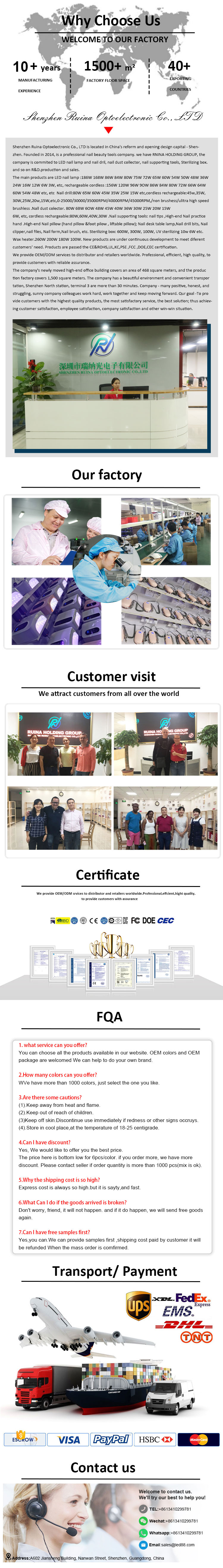 한국어Shenzhen Ruina Optoelectronic Co., Ltd. vezető kínai nagysebességű elektromos gél körömfúró gyártó, szállító és exportőr. Ragaszkodva a termékek tökéletes minőségére való törekvéshez, hogy a nagysebességű elektromos gél körömfúrónkat sok vásárló elégedett legyen. Az extrém dizájn, a minőségi alapanyagok, a nagy teljesítmény és a versenyképes ár az, amire minden vásárló vágyik, és ez az, amit mi is kínálunk Önnek. Természetesen elengedhetetlen a tökéletes értékesítés utáni szolgáltatásunk is.