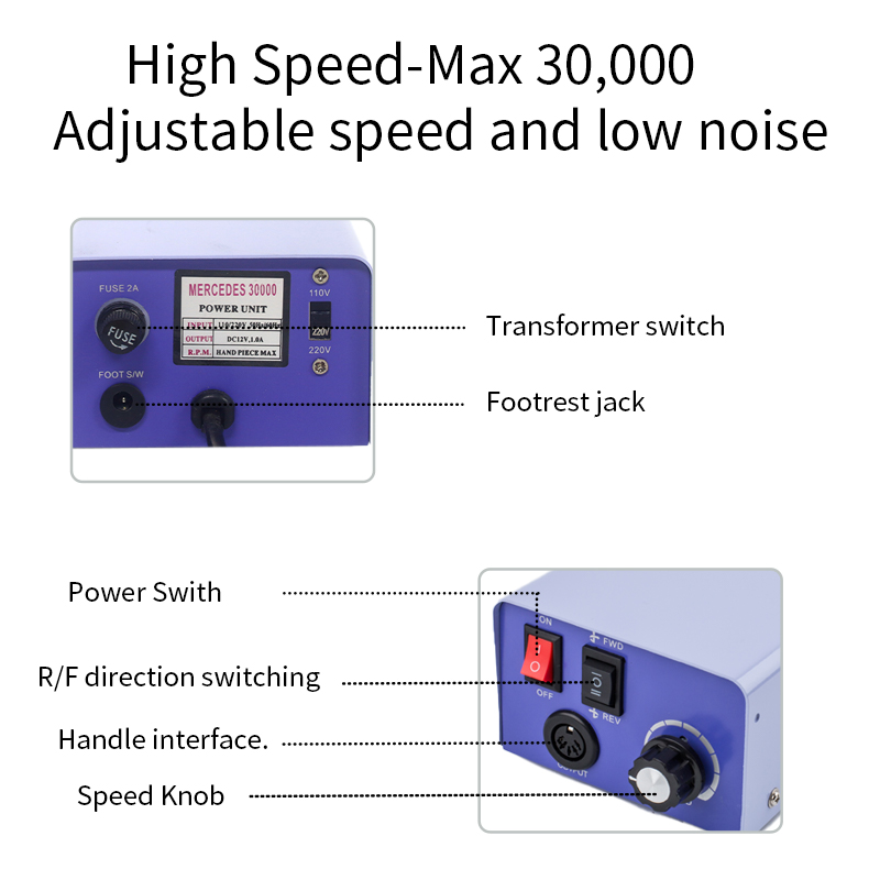 1, Állítható sebesség, nagy teljesítményű motor, nagy sebességű csiszolás, fokozatmentes, valós idejű sebességszabályozás.