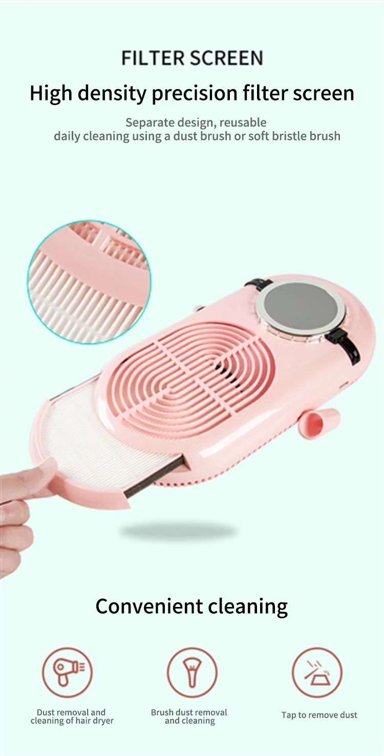 2)A termék precíziós szűrők hatékonyan szűrik a körömpor holttestét és más szennyeződéseket, a sűrű szűrők nem szivárognak a por porképességének adszorpciójával.