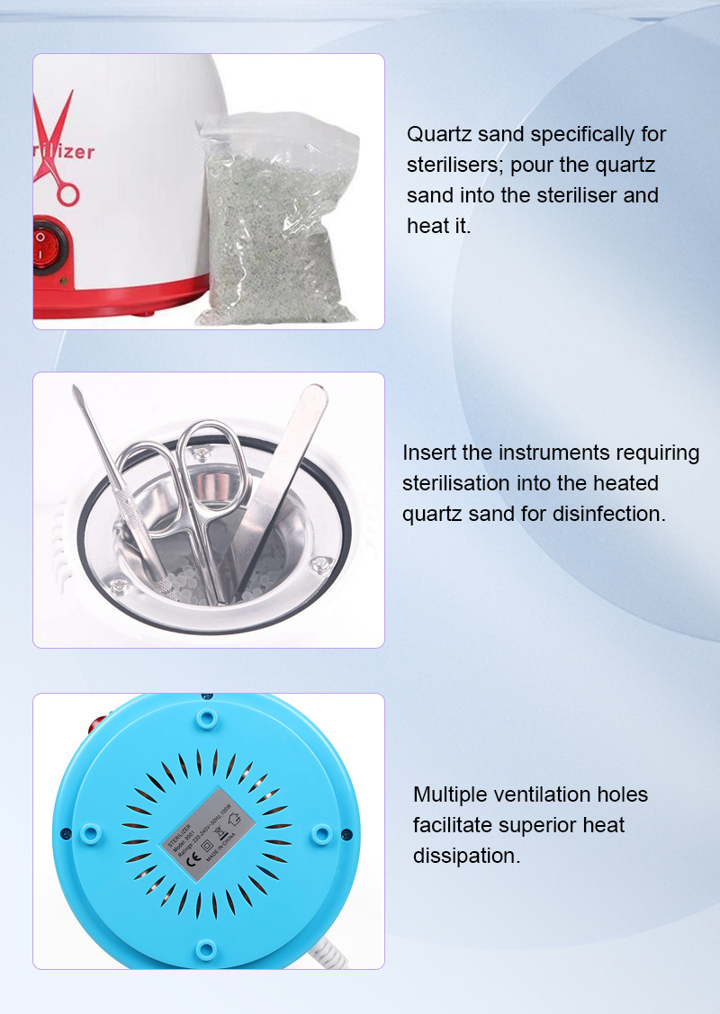 Ez a sterilizátor elsősorban egy fűtőgyűrűn keresztül termel hőt, magas hőmérsékletet használva a fertőtlenítéshez.