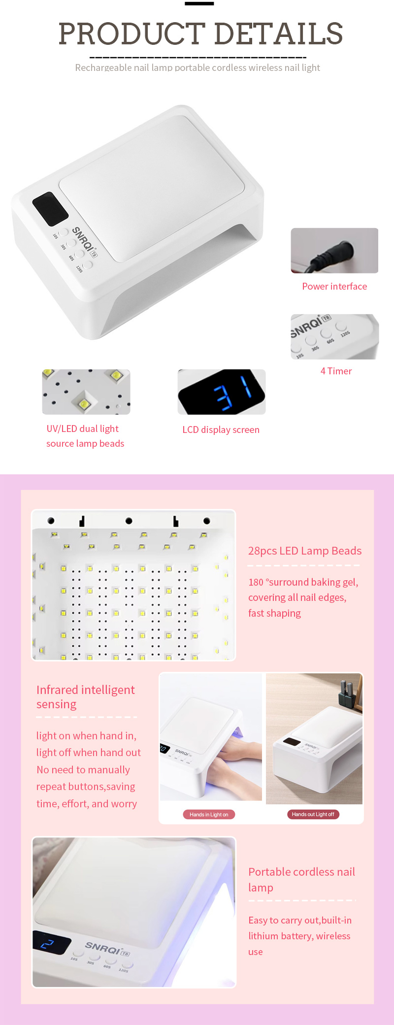 2, Újratölthető köröm sütés könnyű professzionális 128W verziója, amely nem csúszás nélkül van felszerelve.