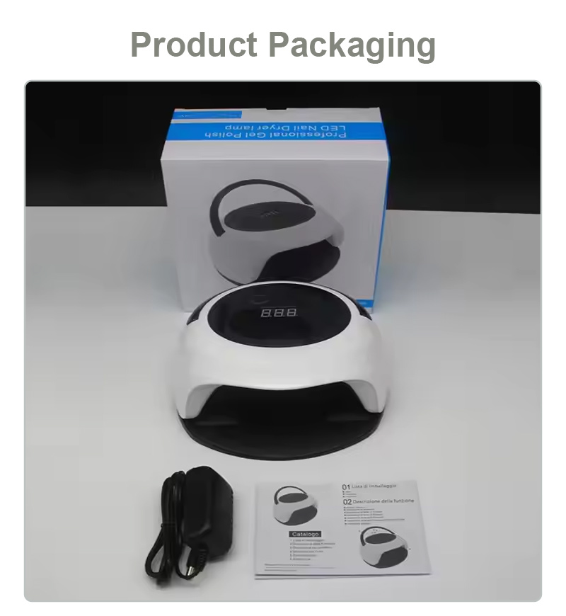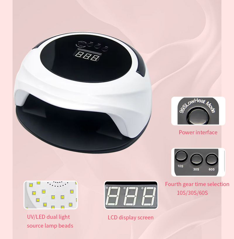 Az automatikus érzékelő funkcióval ellátott körömszárító lámpa egyenletes ragasztószáradást biztosít zsugorodás nélkül. Kettős fényforrása gyengéd melegítést biztosít, hogy megakadályozza a kéz elszíneződését és a szem megerőltetését, így kézre és lábra egyaránt alkalmas, rendkívül gyors száradást biztosítva.