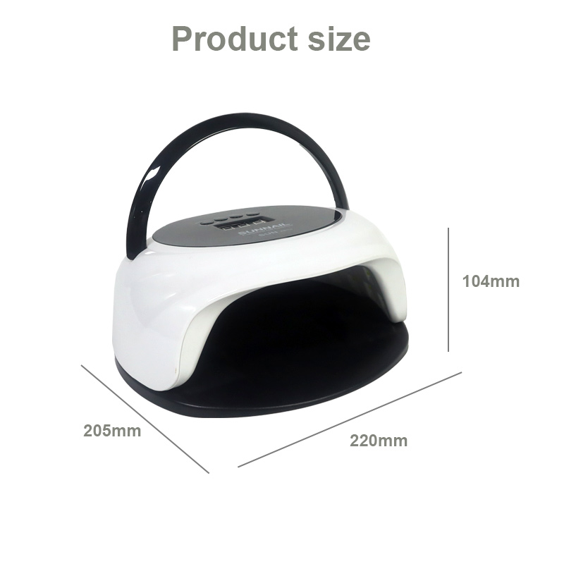 Az automatikus érzékelő funkcióval rendelkező körömszárító lámpa méretei 205 mm hosszúak, 220 mm szélesek és 104 mm magasak, nagy kapacitással és kézzel és lábbal egyaránt használható, ami nagyon kényelmes.