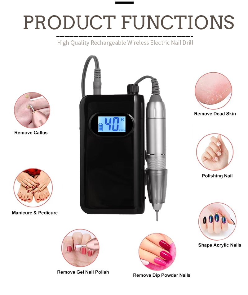 Elektromos körömfúró készlet eltávolítható Dip 65w 35000rpm