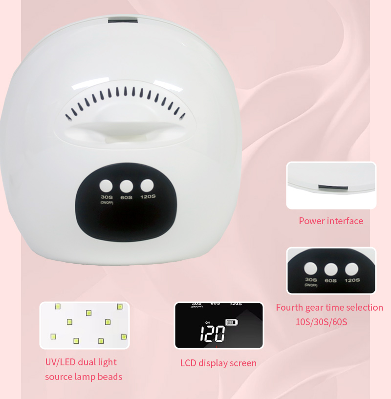 A termék egyenletes ragasztószáradást biztosít zsugorodás nélkül. Kettős fényforrása gyengéd melegítést biztosít, hogy megakadályozza a kéz elszíneződését és a szem megerőltetését, így kézre és lábra egyaránt alkalmas, rendkívül gyors száradást biztosítva.