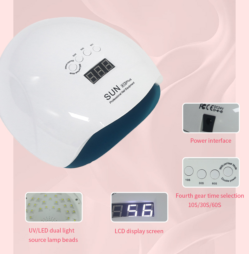 A termék egyenletes ragasztószáradást biztosít zsugorodás nélkül. Kettős fényforrása gyengéd melegítést biztosít, hogy megakadályozza a kéz elszíneződését és a szem megerőltetését, így kézre és lábra egyaránt alkalmas, rendkívül gyors száradást biztosítva.