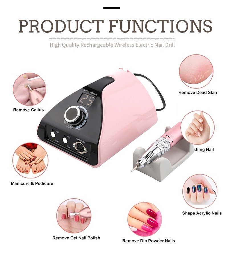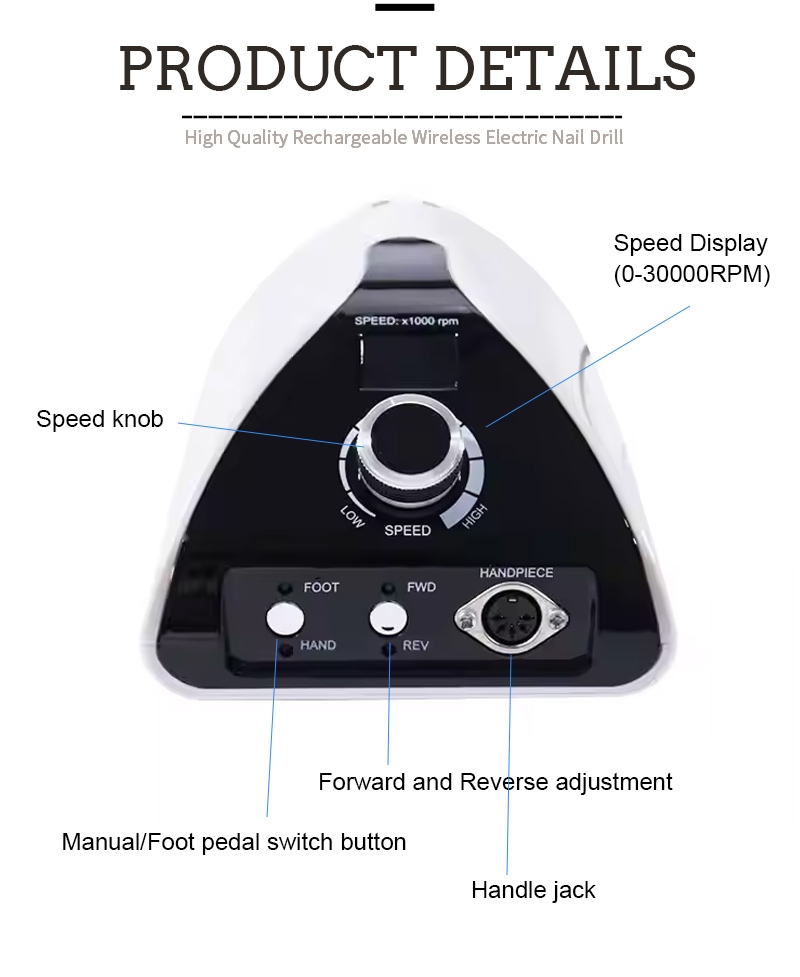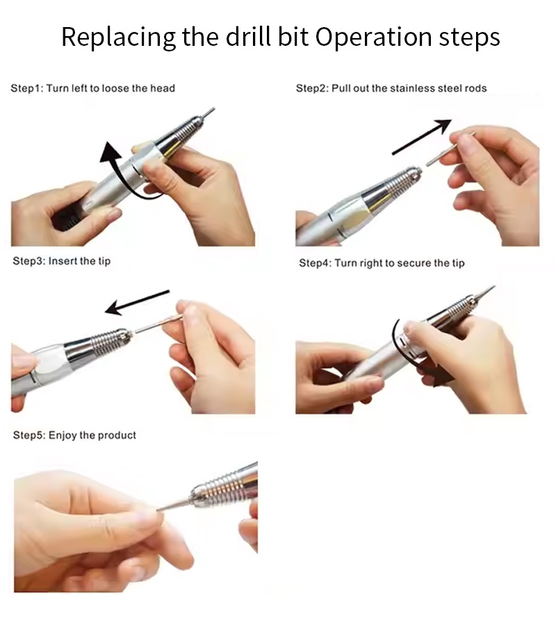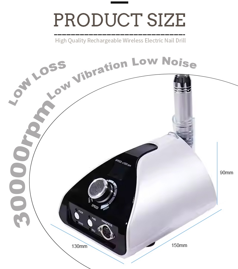 Ez a professzionális hordozható körömfúrógép 35 000 ford./perc cserefúró működési mód, azaz dugja ki és húzza ki, egyszerű és kényelmes, a csere a befejezés után használható.