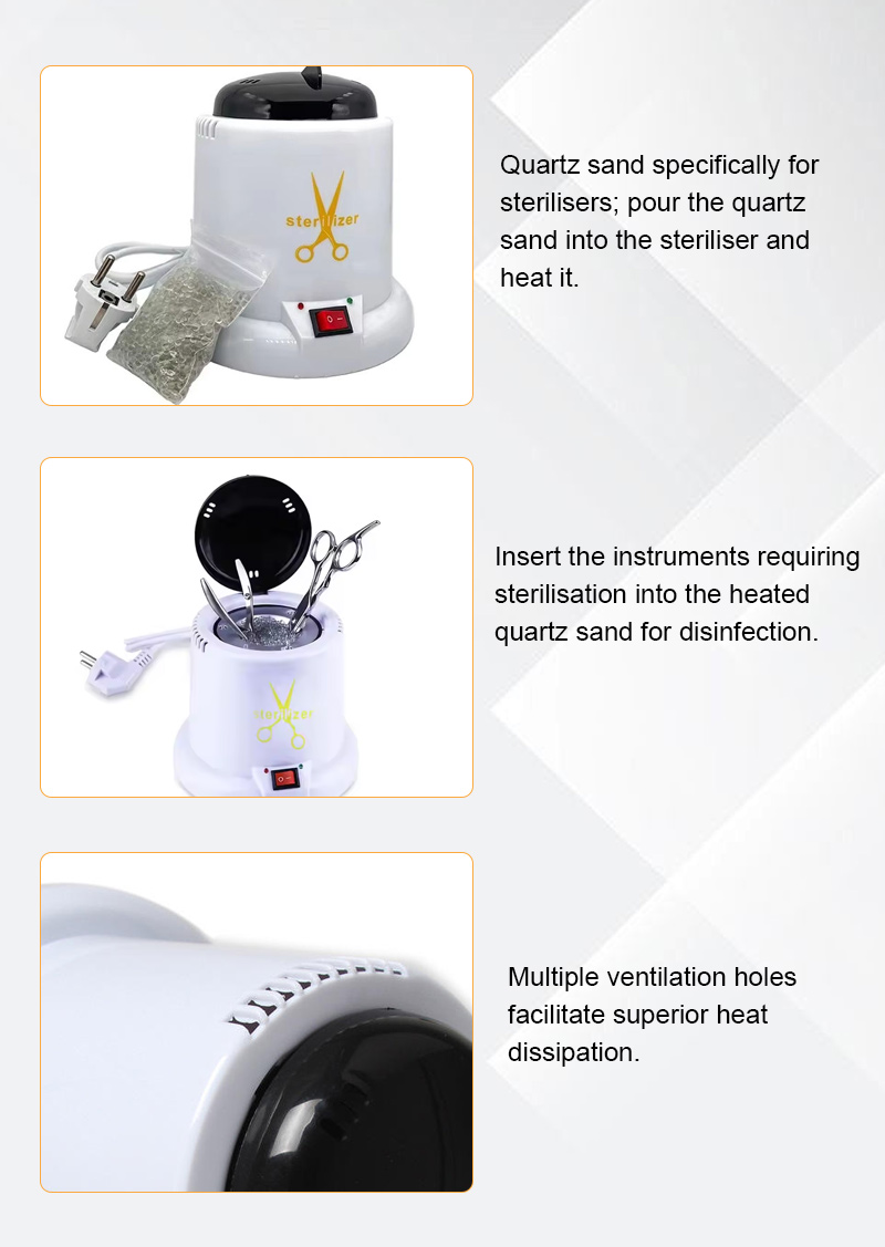 Ez a sterilizátor elsősorban egy fűtőgyűrűn keresztül termel hőt, magas hőmérsékletet használva a fertőtlenítéshez.