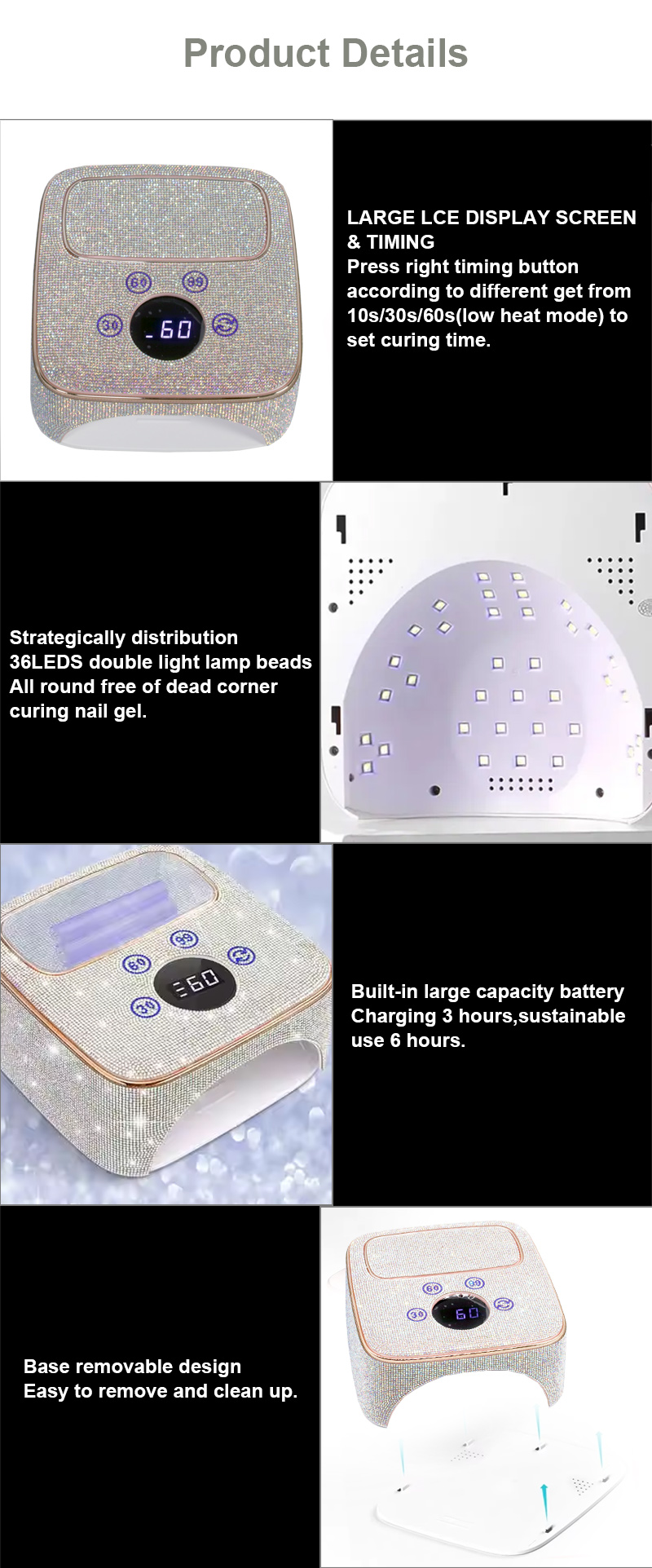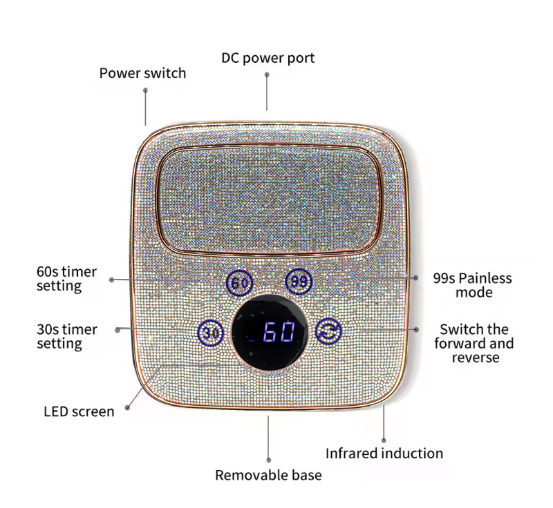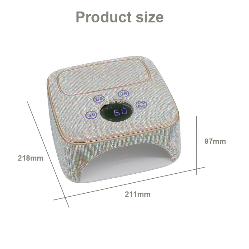 A termék egyenletes ragasztószáradást biztosít zsugorodás nélkül. Kettős fényforrása gyengéd melegítést biztosít, hogy megakadályozza a kéz elszíneződését és a szem megerőltetését, így kézre és lábra egyaránt alkalmas, rendkívül gyors száradást biztosítva.