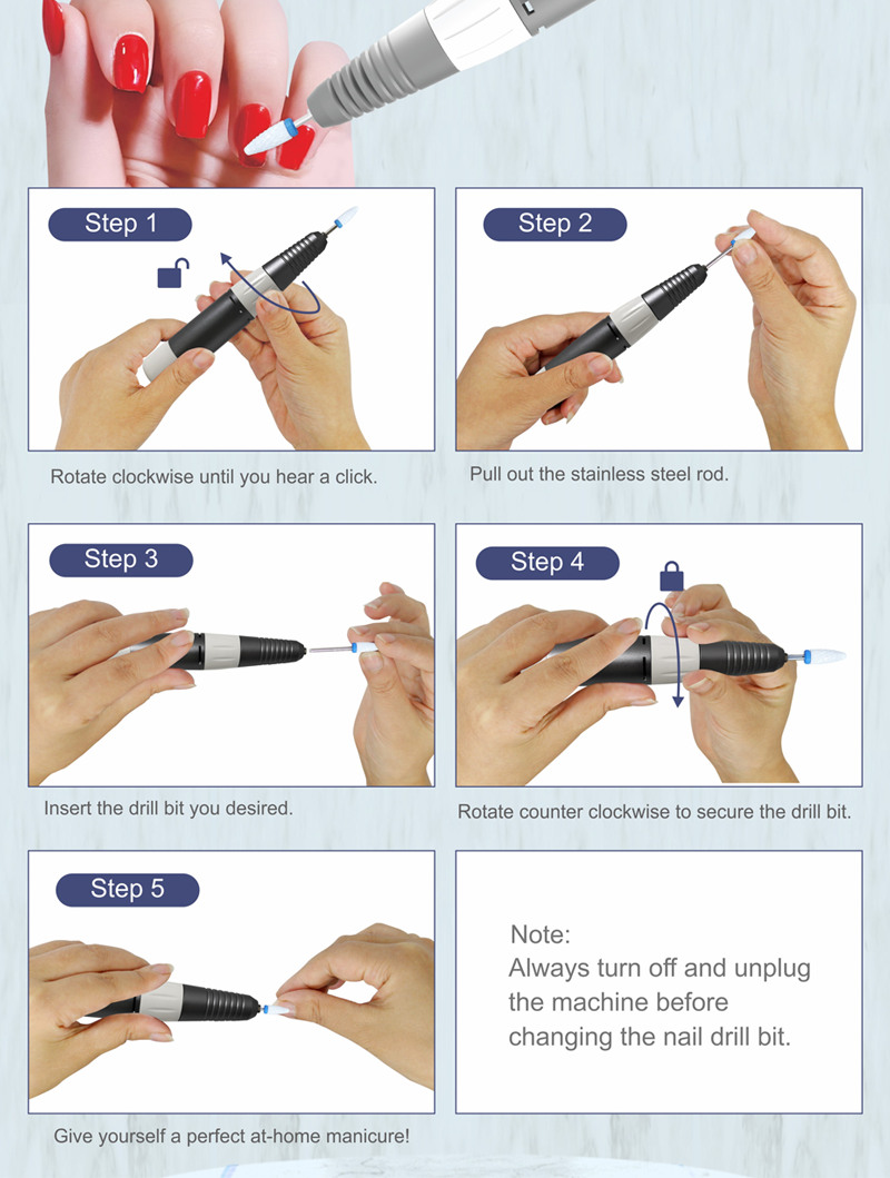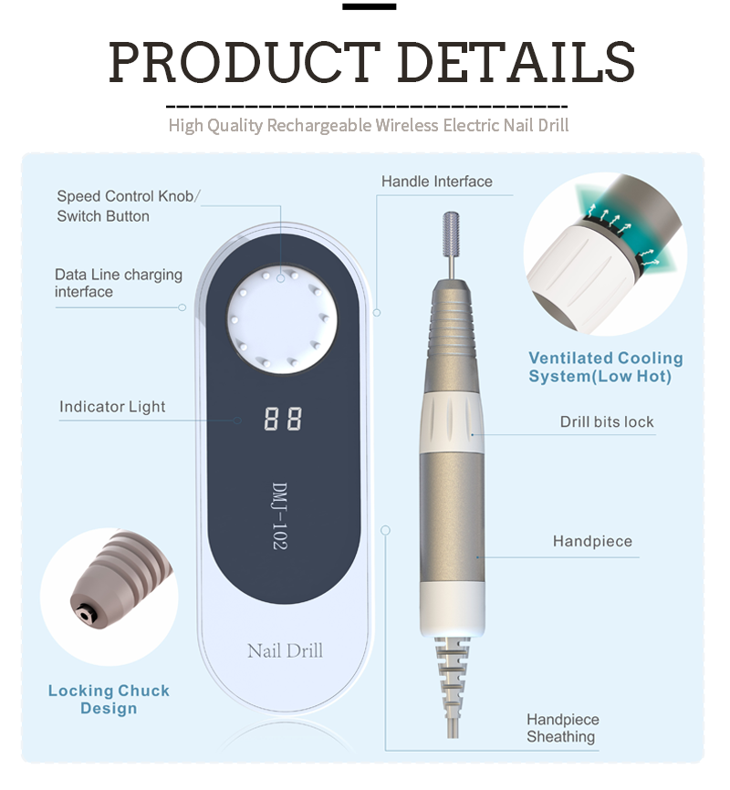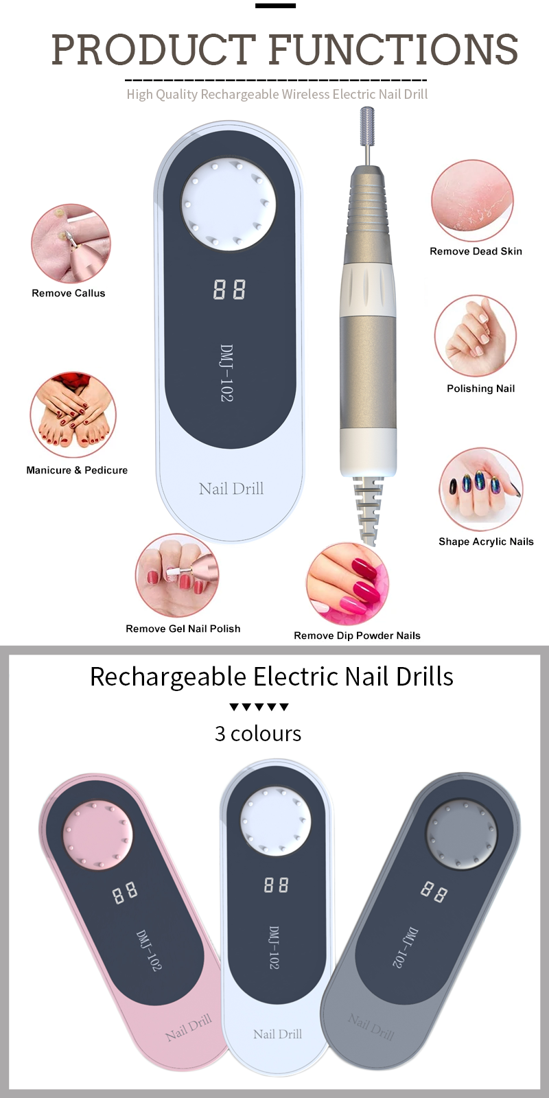 DMJ-102 nagysebességű 35 000 fordulat / perc elektromos körömfájl a lengyel eltávolításhoz: Jellemzők és alkalmazások