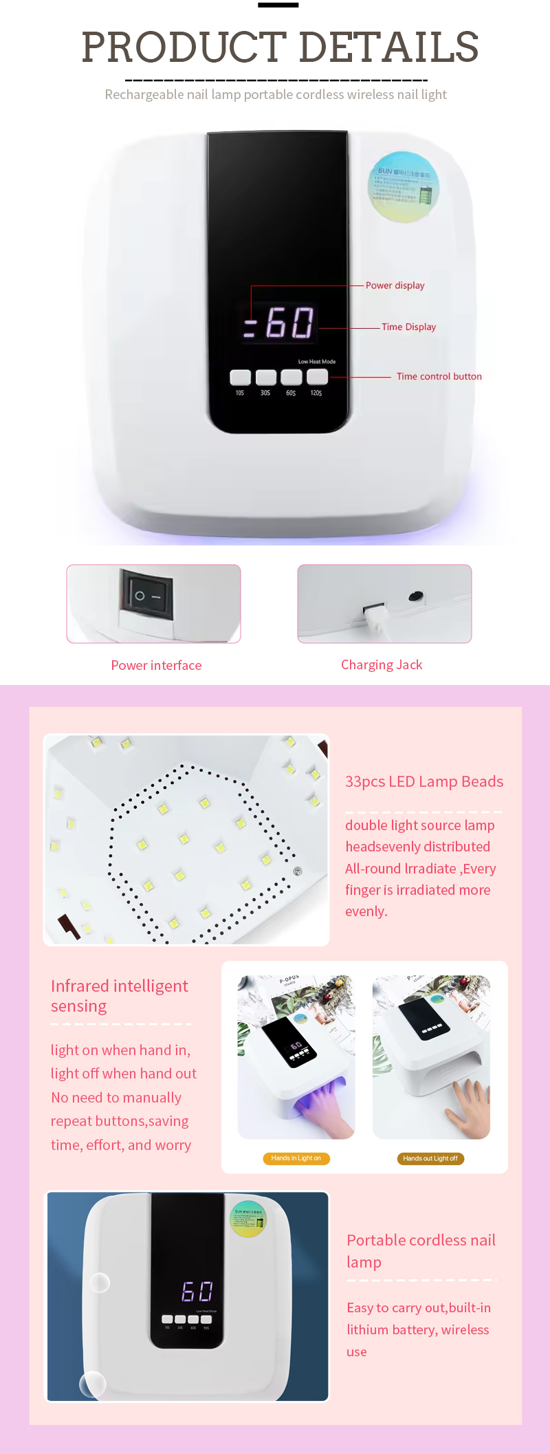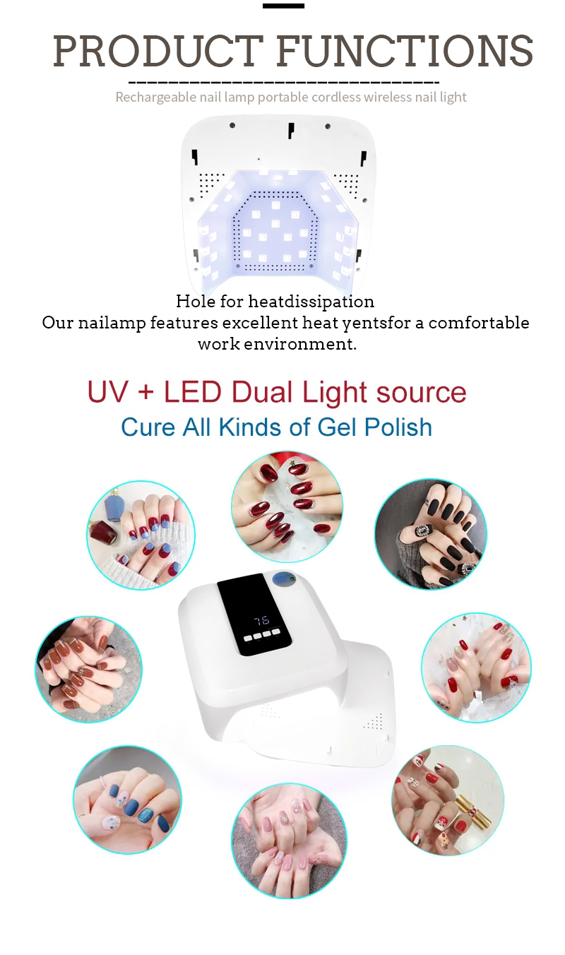 A termék egyenletes ragasztószáradást biztosít zsugorodás nélkül. Kettős fényforrása gyengéd melegítést biztosít, hogy megakadályozza a kéz elszíneződését és a szem megerőltetését, így kézre és lábra egyaránt alkalmas, rendkívül gyors száradást biztosítva.