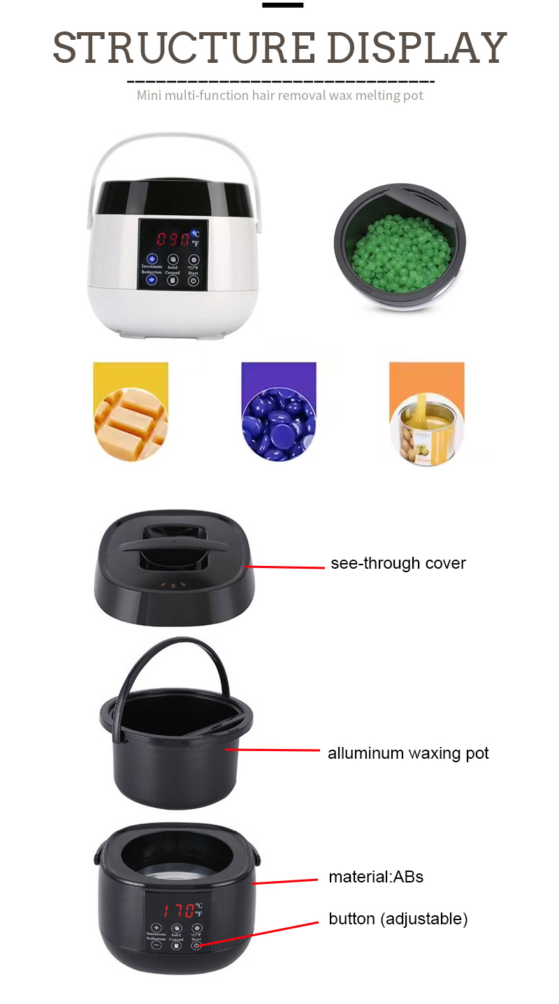 Nagy kapacitású viaszbabok széles skálájának olvasztására.ABS műanyag héj, magas hőmérsékletnek ellenálló, a héj fényesebb.